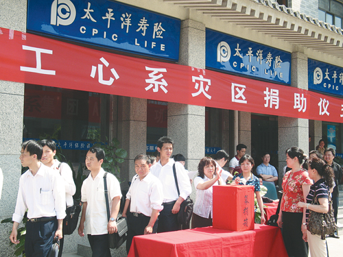 “一手抓保險理賠,一手抓業(yè)務發(fā)展”的工作要求,在全轄大力開展“眾志成城、愛心傳遞”活動。公司從所售保單中按一定比例提取資金籌集“太平洋壽險員工愛