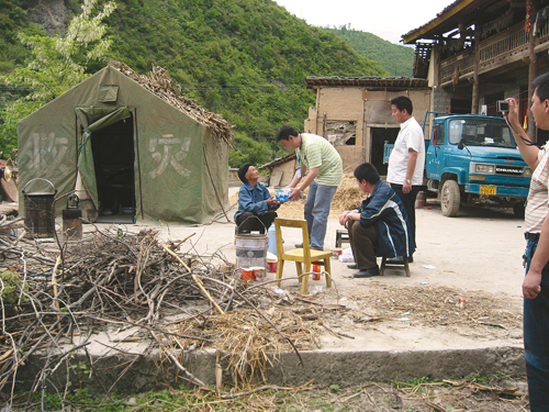 3個查勘小組,第二天早晨便出發(fā)趕往寶雞。19日,他們又組織第二批查勘人員前往寶雞查勘災情。當時由于余震不斷,查勘人員只能露宿在廣場或野外,但是沒