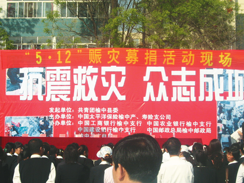 產(chǎn)、壽險甘肅分公司榆中支公司主辦大型賑災募捐活動。
