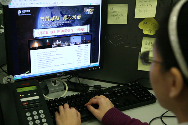 3月中旬,太平洋保險發(fā)出了踐行“做一家負責(zé)任的保險公司”使命,讓地球休“熄”一小時的倡議,號召全司員工和客戶參與到地球一小時活動中,并統(tǒng)一制作海報,在分支機構(gòu)在營業(yè)場所張貼。3月22日,太平洋保險又開通了“低碳節(jié)能、真心承諾”的電子承諾墻,請大家用最環(huán)保的形式,留下低碳環(huán)保生活的承諾。廣大員工積極響應(yīng)倡議,在留言墻上留下真心承諾,如“節(jié)能減排從生活的點點滴滴著手”、“地球是我們共同的家園,讓我們攜手共建美好家園”,短短2天,已經(jīng)有幾千人留言。