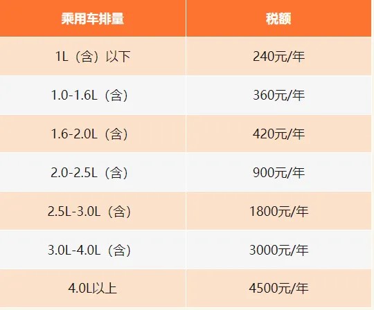 乘用車按照排量征收,商用車按照每輛征收,貨車按照整備質量征收,摩托車按照每輛征收。